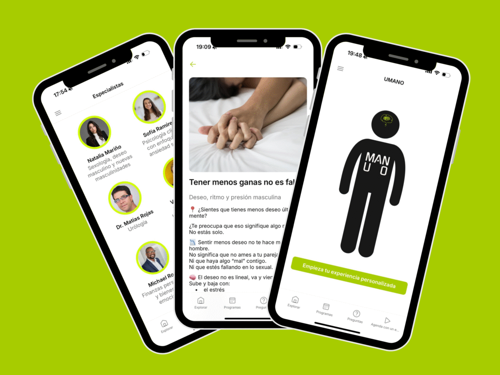 En UMANO reconecta contigo y trabaja en tu bienestar sexual y emocional. Explora a tu ritmo, individual o con profesionales.